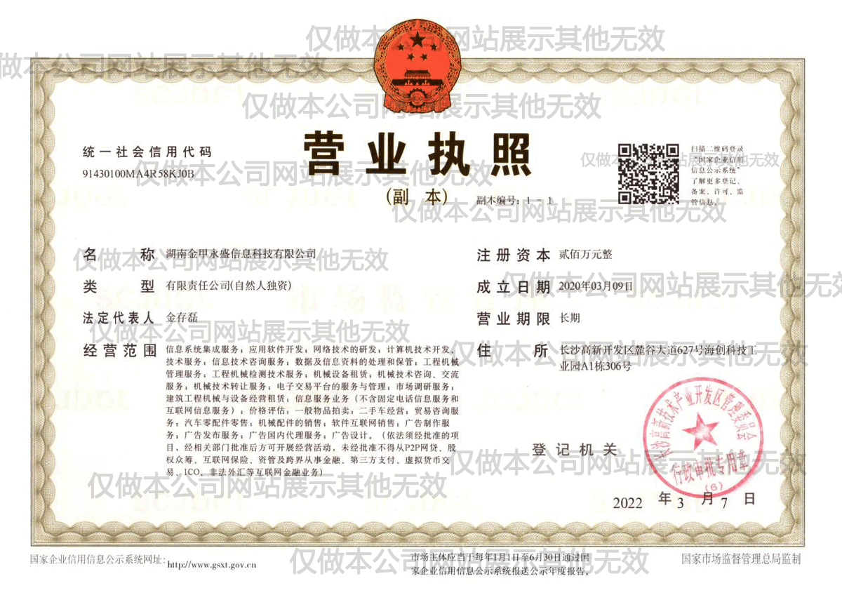 湖南金甲永盛信息科技有限公司,成立于2020年3月,地址位于長沙市高新開發(fā)區(qū)麓谷大道627號新長海中心,總辦公面積為400平方米,緊鄰長張高速,交通便利,與中聯(lián)重科麓谷產(chǎn)業(yè)園相毗鄰。